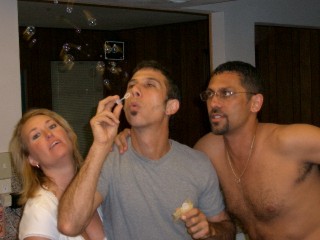 We ran home, (Jef's place) grabbed our luggage and whatnot, played with the bubbles we got at the weddingÂ