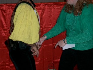 Things got a little out of hand, or into hand- after a rocking rendition of Robin Hood; Jef really shone as the host of Let's Make a Deal. Here a woman at the party chose neither the gift, nor curtains 1, 2, or 3 Believe it or not this is our job!