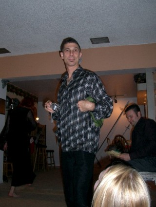 (from l to r, top) Riki, Sarah, and Andy Blau, our Canadian geek magician friend. (Bottom) Magic Mike's wife, (who's name has slipped my memory) My great jouster friend Dave Schade, and his Lovely girlfriend Jenn it was time for drunkenness and debauchery New Orleans style. Sarah got to go to her first strip club, didn't get any beads (chicken!) Sarah had fun and made new friends thoughÂ