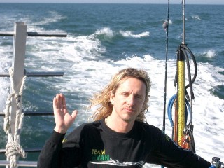 Here's me wet, but re-dressed after the dive, on the way home. I'll get photos of me in gear next trip, and perhaps even underwater.